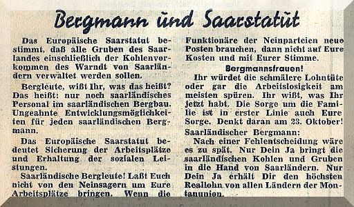 war der erste Bergmann seiner Zeit.Er wußte dem Saarbergbau
